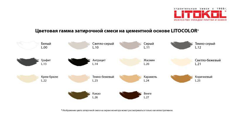Litocolor – это цветная затирочная смесь на основе цемента для заполнения швов при облицовке пола и стен керамической плиткой, керамогранитом, натуральным и искусственным камнем. Для швов шириной от 1 до 5 мм.